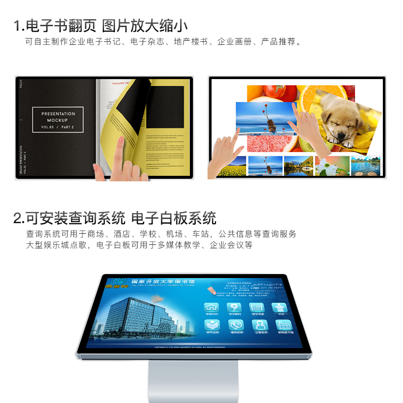 卡迪富厂家直销卧式触摸屏查询一体机21.5/32/43/49/55/65寸
