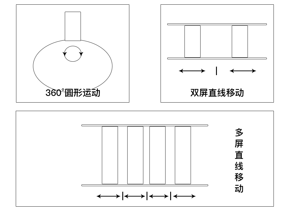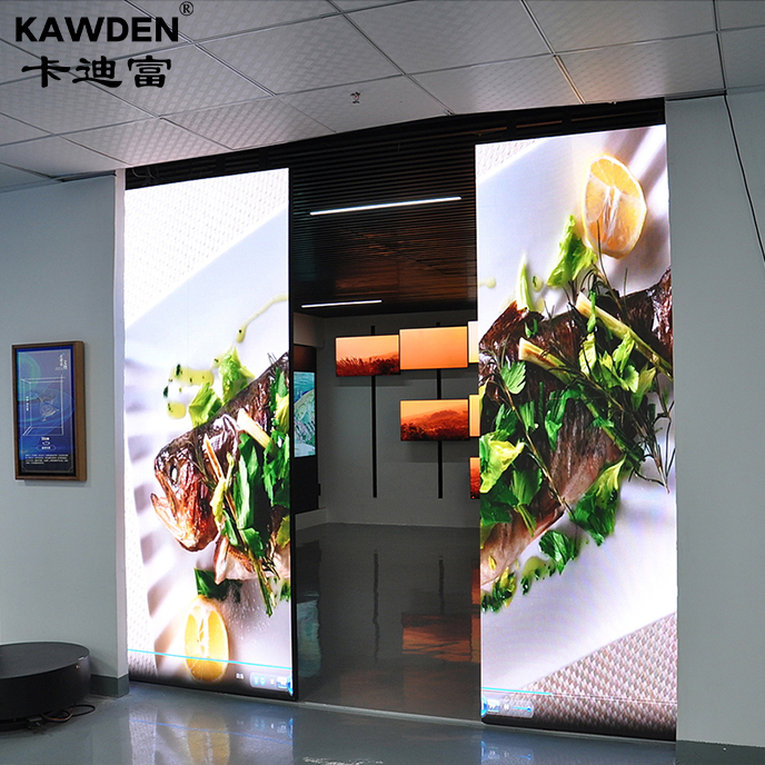 卡迪富互动滑轨屏多屏联动/塞拉门/透明滑轨屏开合联动弧形互动电动一体机