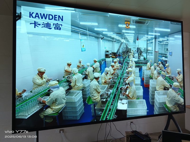 卡迪富为江苏丹阳导墅镇某食品公司打造的P1.25 LED显示屏,以3.52米×2.08米的超清巨幕,成功构建了集会议、安防监控与展厅展示于一体的多功能智能中枢。其1.25mm微间距技术确保画面细腻无颗粒感,GOB封装工艺实现防尘防撞,满足食品企业严苛的卫生与安全标准。系统支持多终端实时接入与分屏显示,既可同步监控生产流程,又能动态展示企业成果,更可通过触控交互功能提升会议效率。该项目的落地,标志着卡迪富在食品行业数字化升级领域再树标杆。