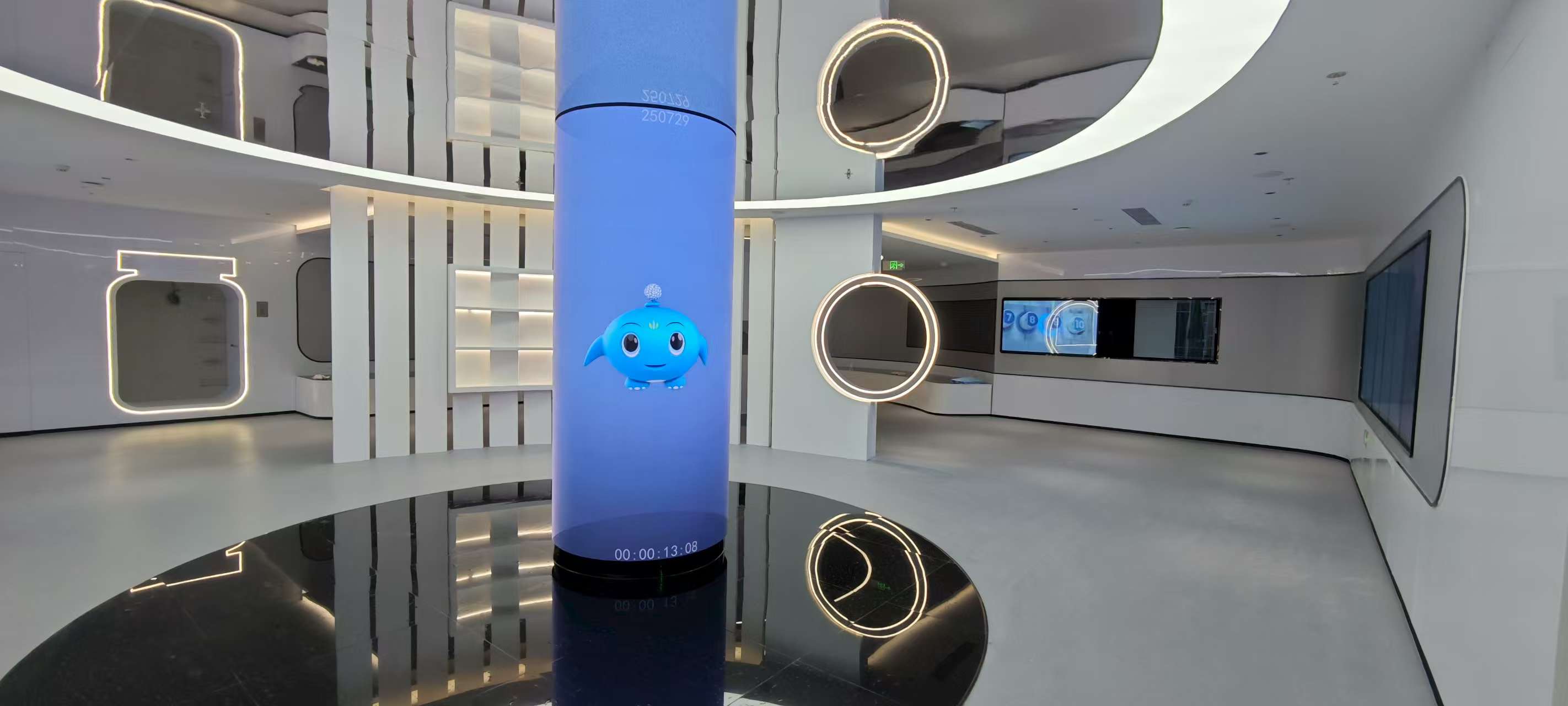 - 2025-09-15北京华龛展厅圆柱屏触摸拼接屏一体机组合展示