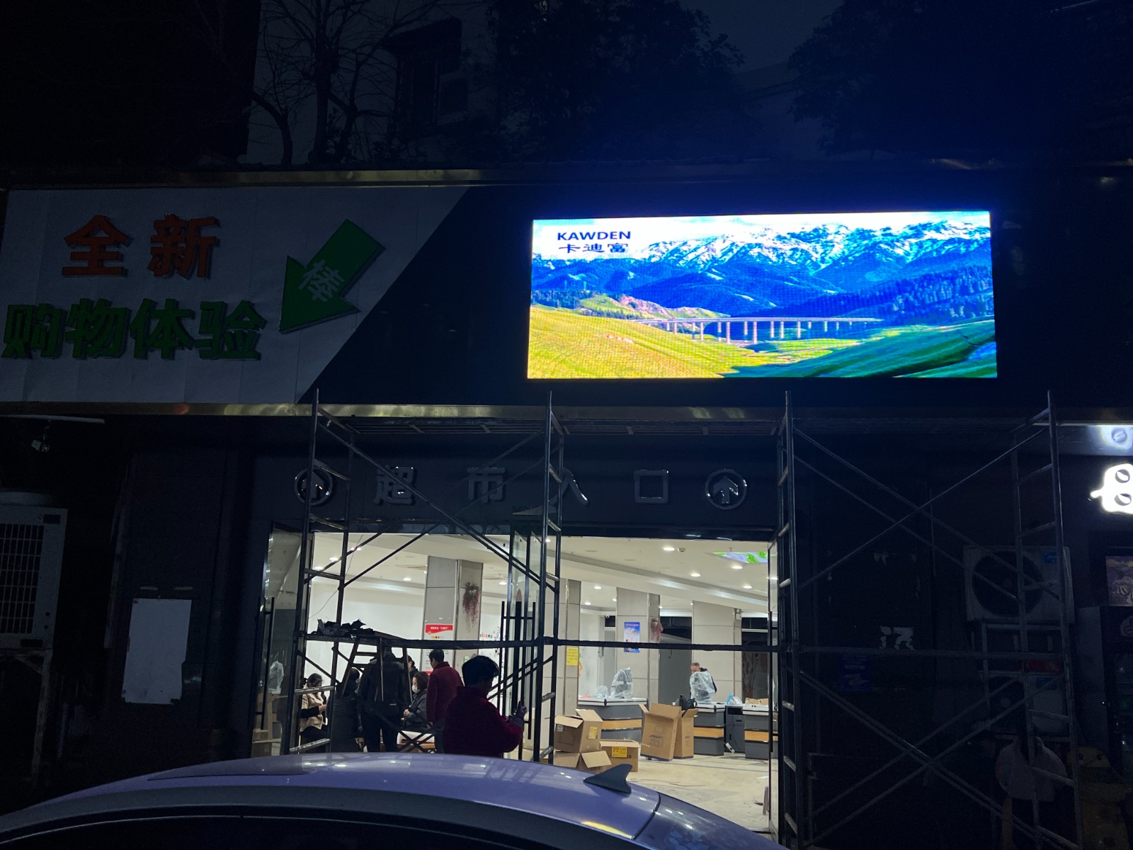 爱乐购超市采用的卡迪富户外P5 LED显示屏,以其高分辨率和卓越的色彩表现力,即使在强光直射的户外环境下,也能呈现出细腻逼真、色彩饱满的画面效果。无论是动态广告、促销信息还是品牌宣传,都能以震撼的视觉效果吸引过往行人的目光,有效提升超市的曝光度和吸引力。